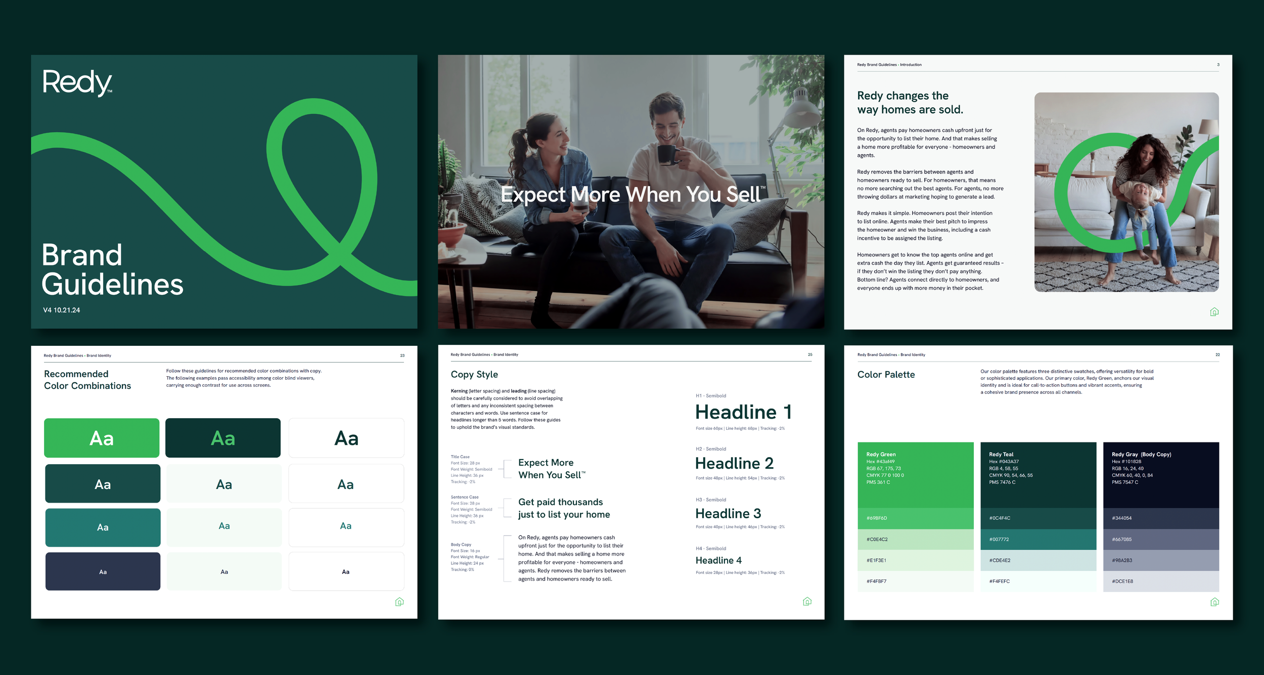 Challenge: In an industry where most platforms look and sound the same, Redy lacked brand consistency, visual hierarchy, and a cohesive identity that could scale. There was no established design system or brand guidelines in place, making it difficult to create a unified experience across marketing and product. I set out to build a bold, differentiated identity that positioned Redy as a smarter, more rewarding choice for home sellers.